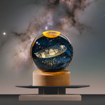 La lampe Boule de Cristal Galaxie fonctionne avec une base en bois LED multicolore. Il vous suffit de la brancher pour profiter de l'éclairage doux et apaisant de cette lampe 3D inspirée de l'astronomie.